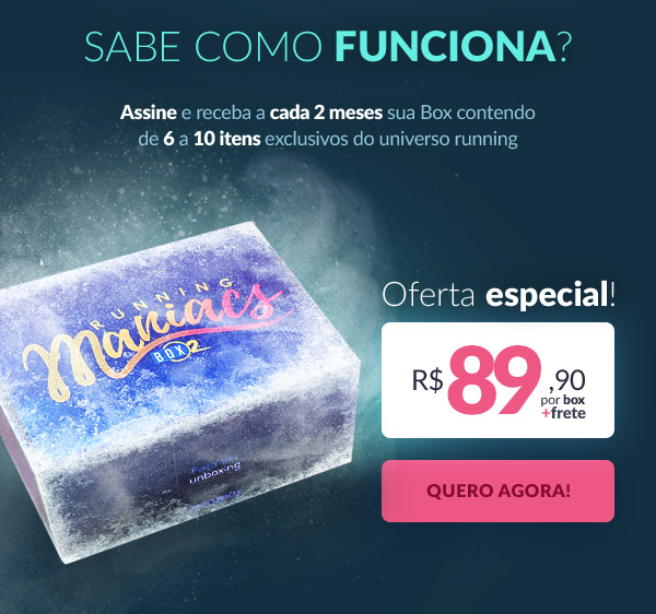 O2 Box É louco por corrida? A O2 Box foi feita pensando em você! Uma caixa recheada de produtos exclusivos e condições especiais para receber no conforto da sua casa. Venha e faça parte dessa nova mania.