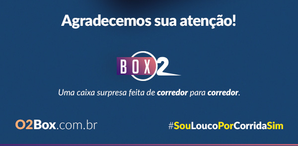 O2 Box É louco por corrida? A O2 Box foi feita pensando em você! Uma caixa recheada de produtos exclusivos e condições especiais para receber no conforto da sua casa. Venha e faça parte dessa nova mania.